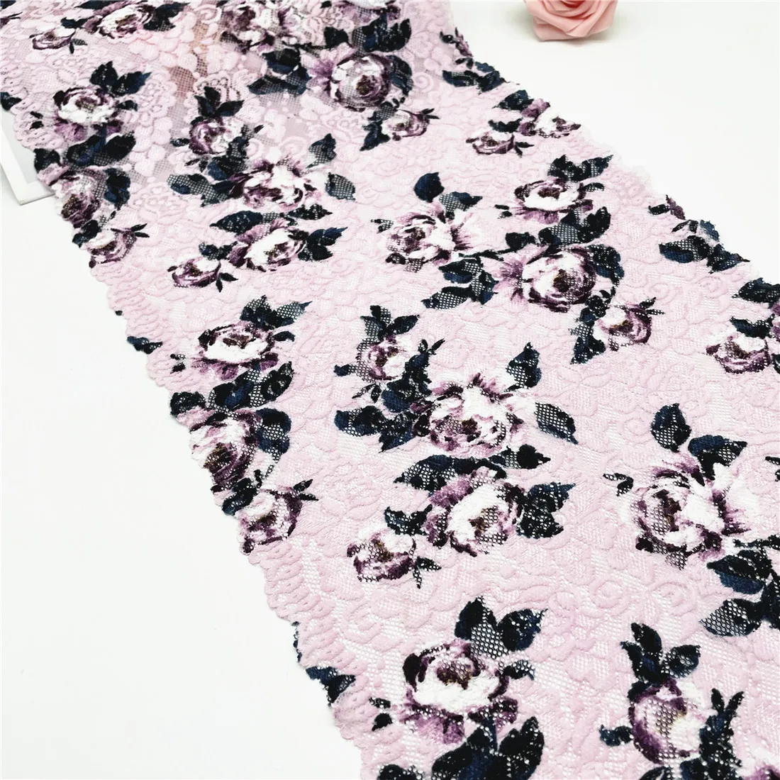 Width 28cm Wide Pink Floral Stretch Elastic Lace Fabric DIY Crafts Sewing Supplies Decoration Accessories For Garments Material Bjd