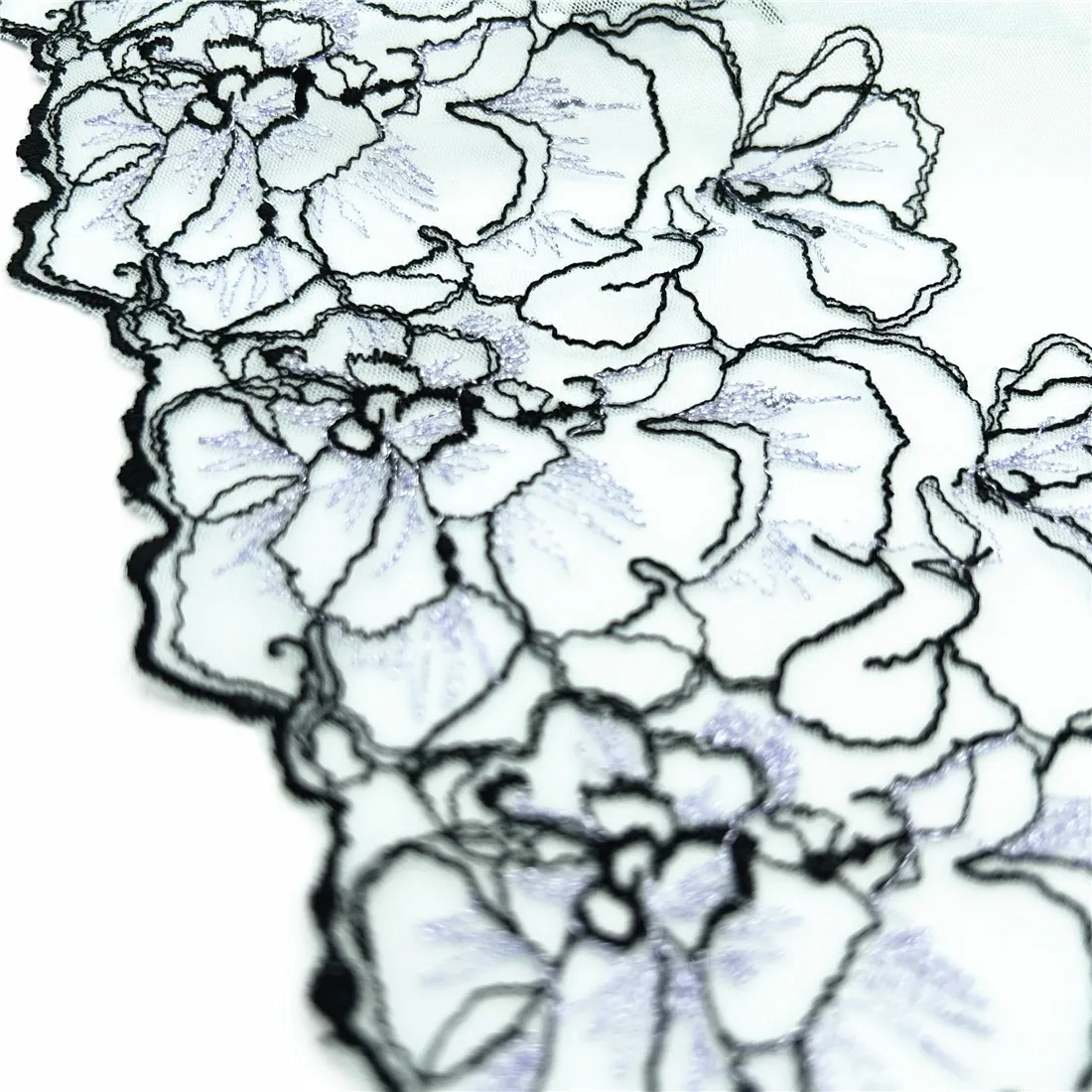 Width 18.50cm Light Blue With Lavender Shimmer Embroidery Lace No-Elastic For Clothing Accessories Dress Sewing Applique Costume Lace Fabrics