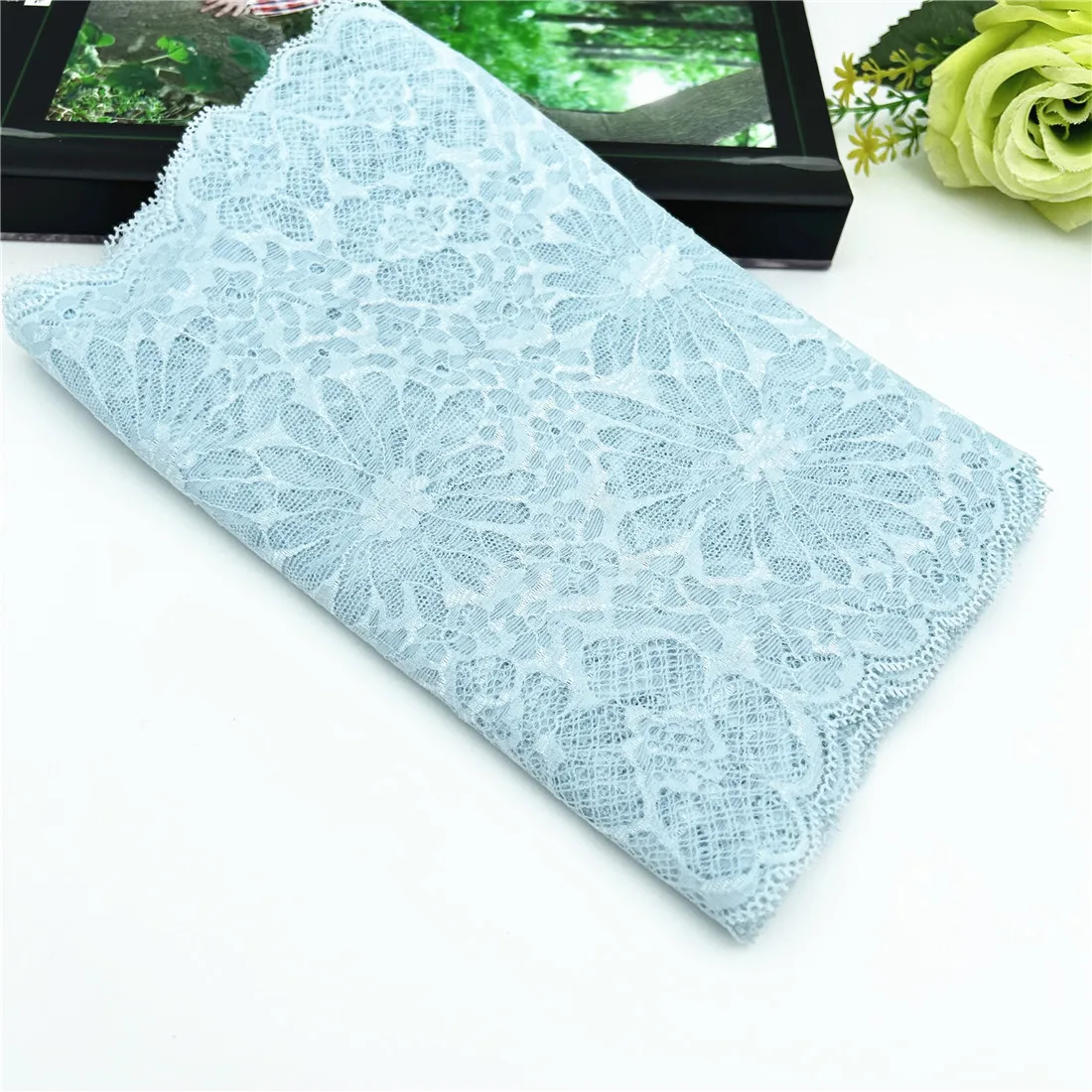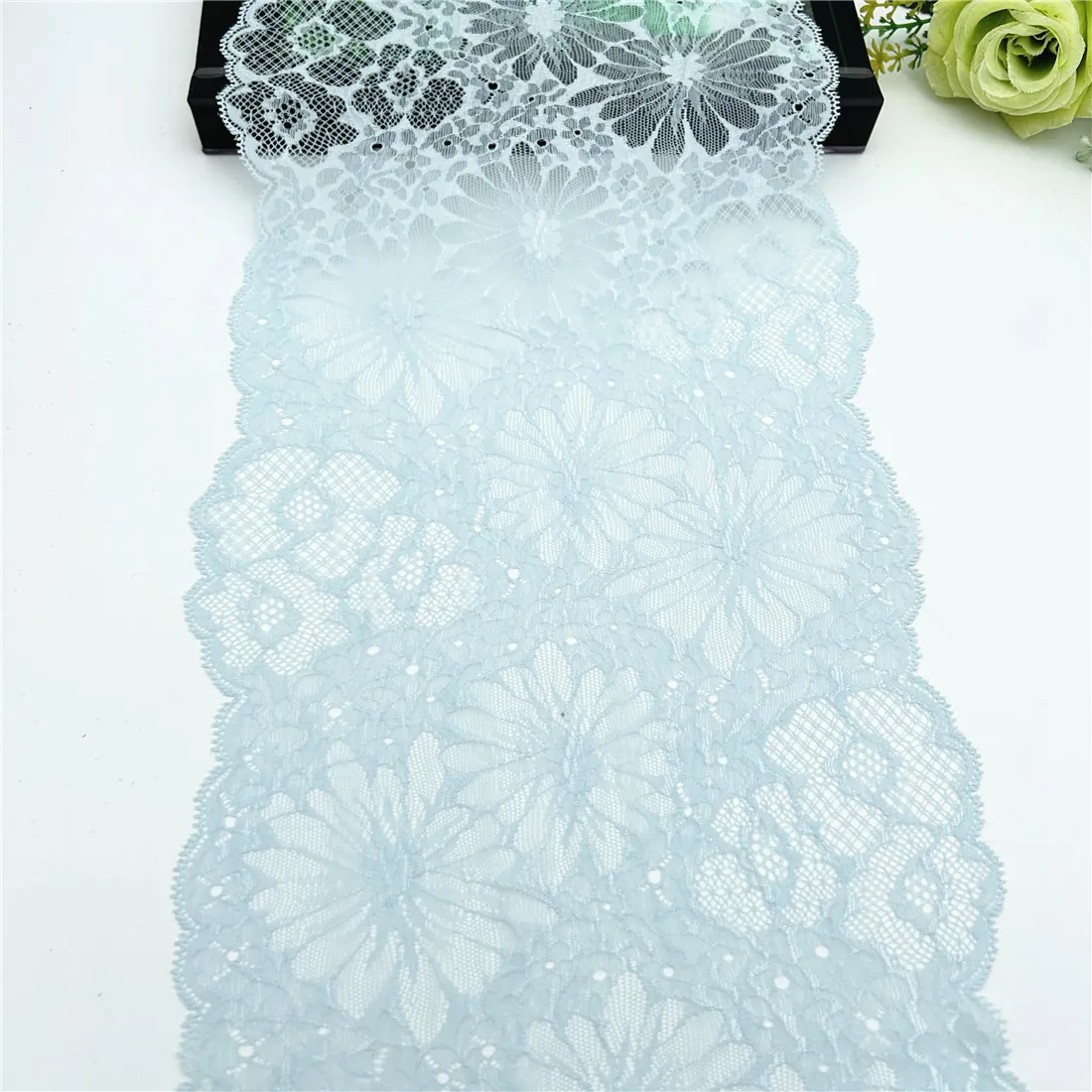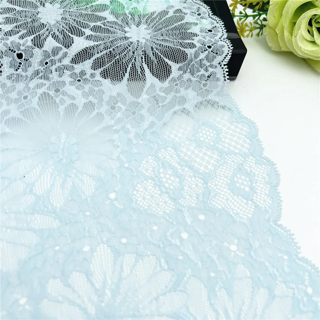Width 22cm Light Blue Stretch Elastic Lace Fabric Bikini DIY Crafts Sewing Supplies Decoration Accessories For Garments Underware Lace Trim