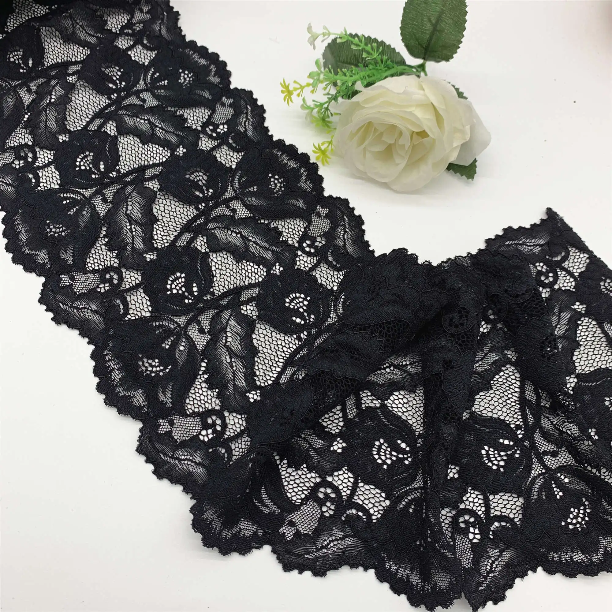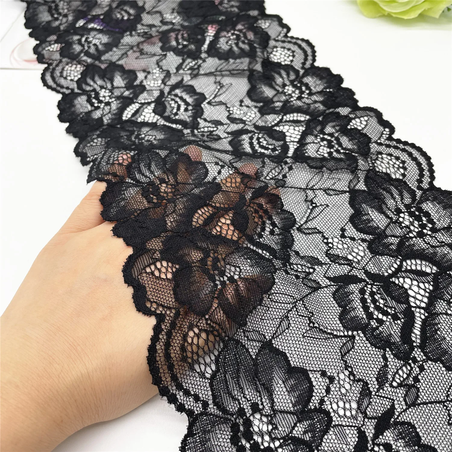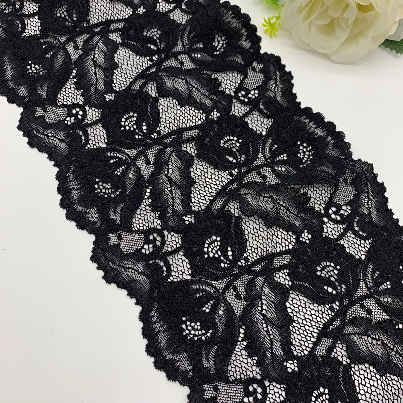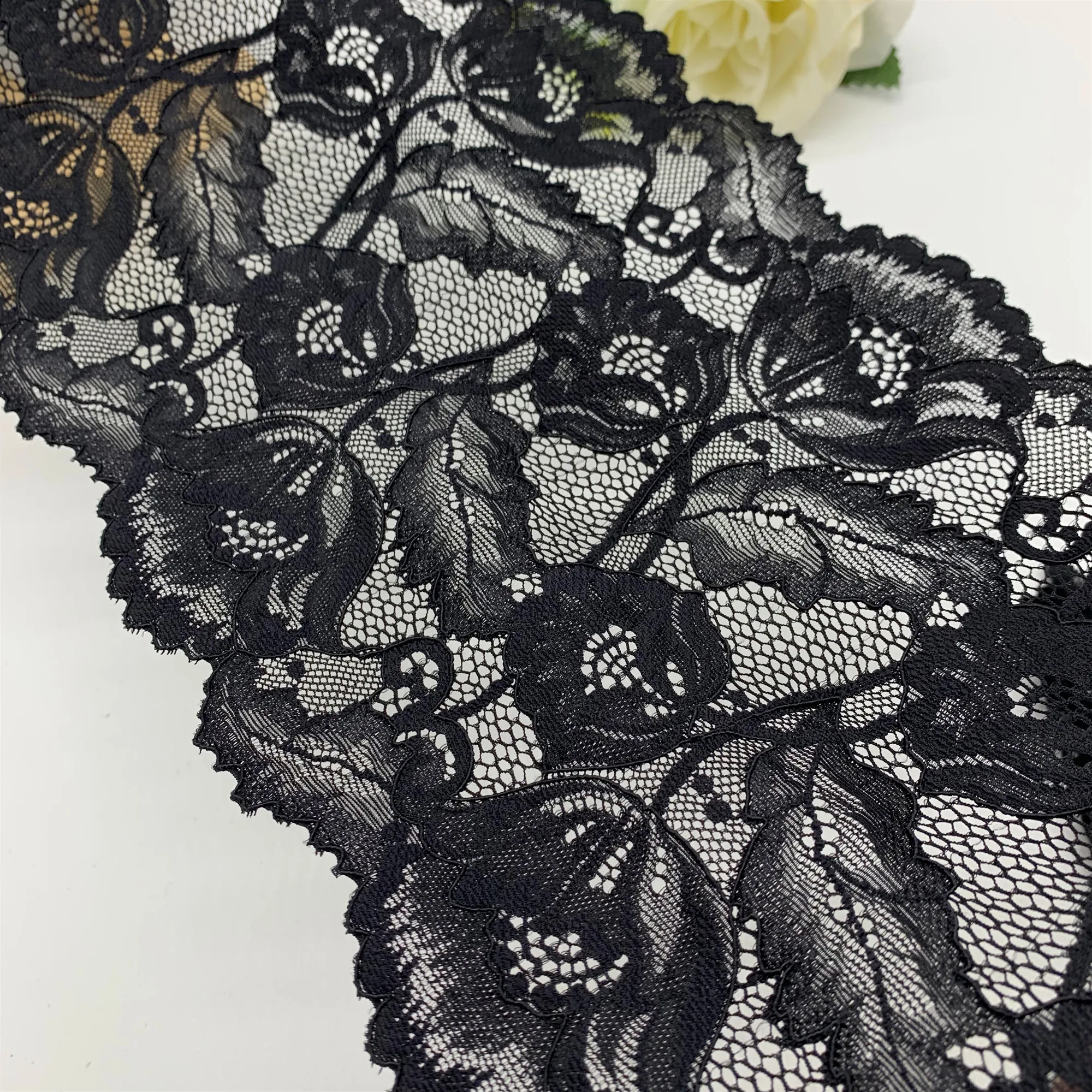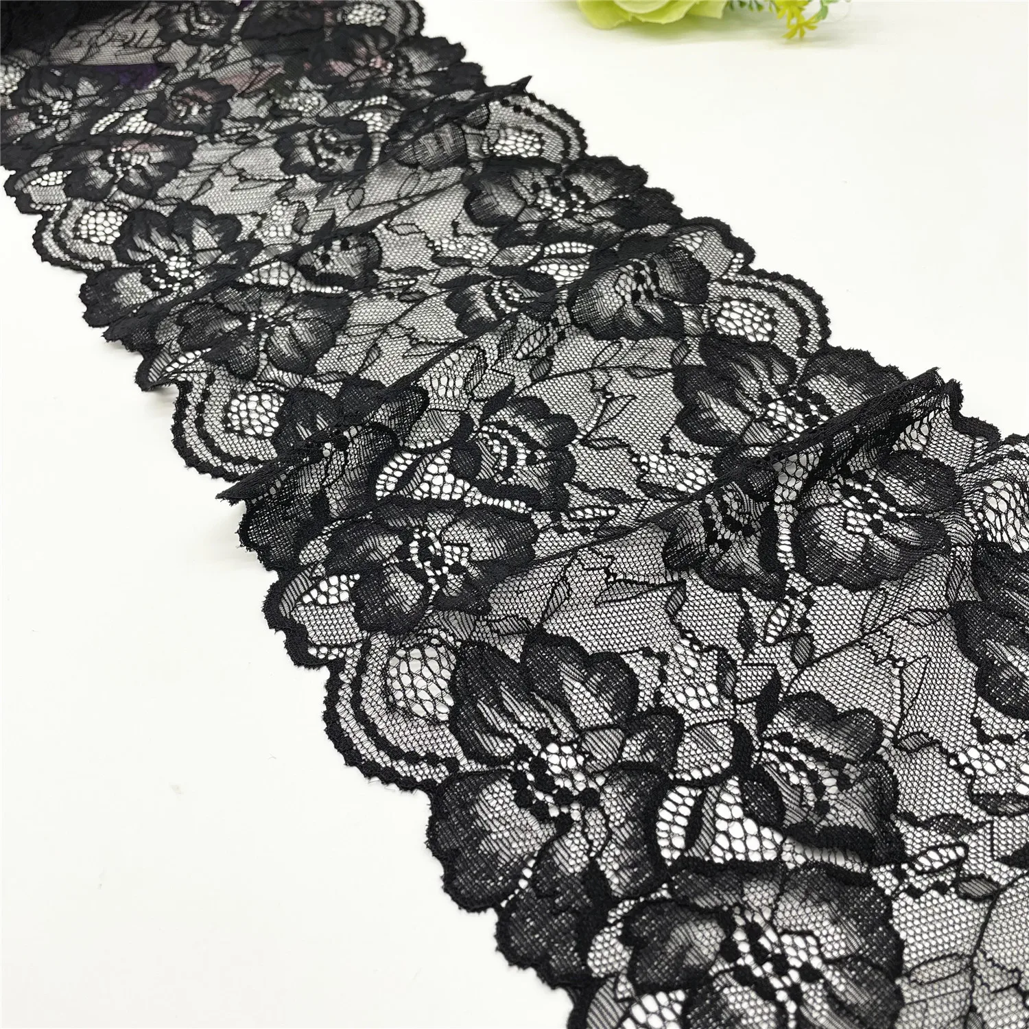 18.50cm Floral Elastic Stretch Lace Trims Black For Clothing Accessories Dress Sewing Applique Costume Lace Fabrics