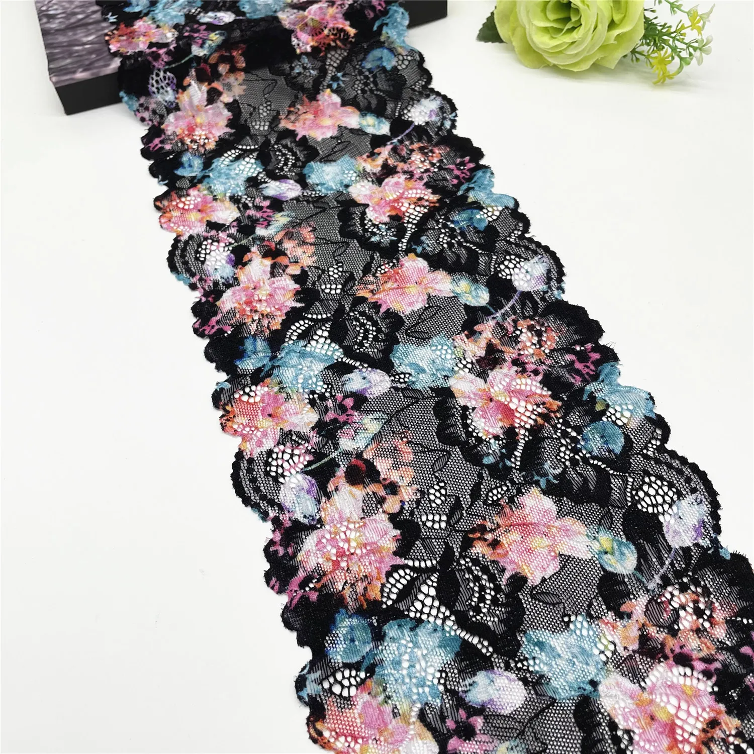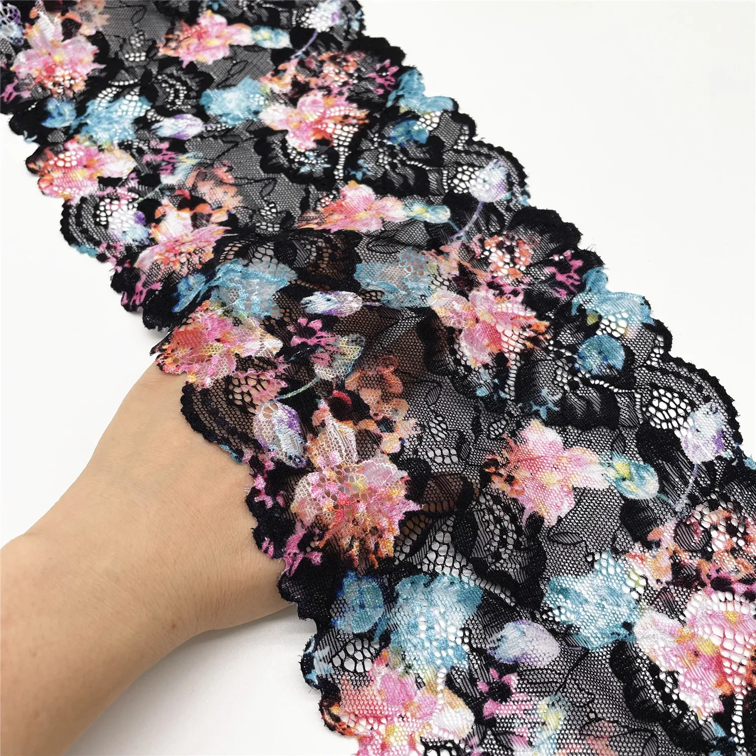 Width 7 1/4 inch (18.50cm) Mixed Design Pink, Blue And Purple Flower Stretch Elastic Lace Trim Lingerie DIY Crafts Sewing Supplies Decoration Accessories For Garments