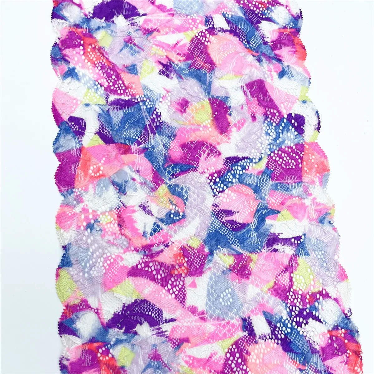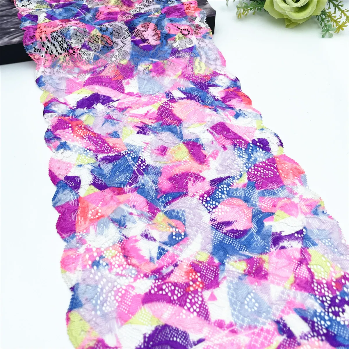 3y/lot Width 18.50cm Mixed Purple Pink Blue Stretch Lace Trim
