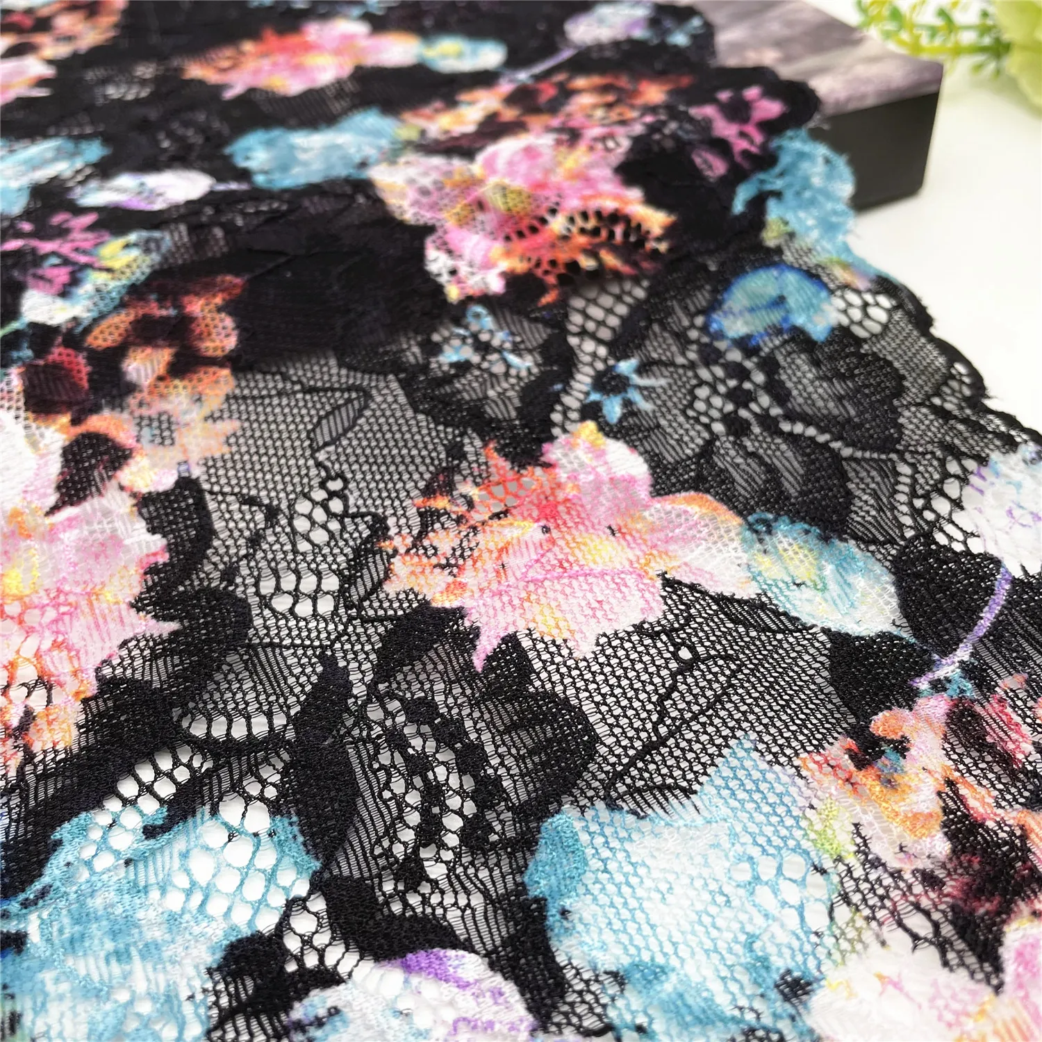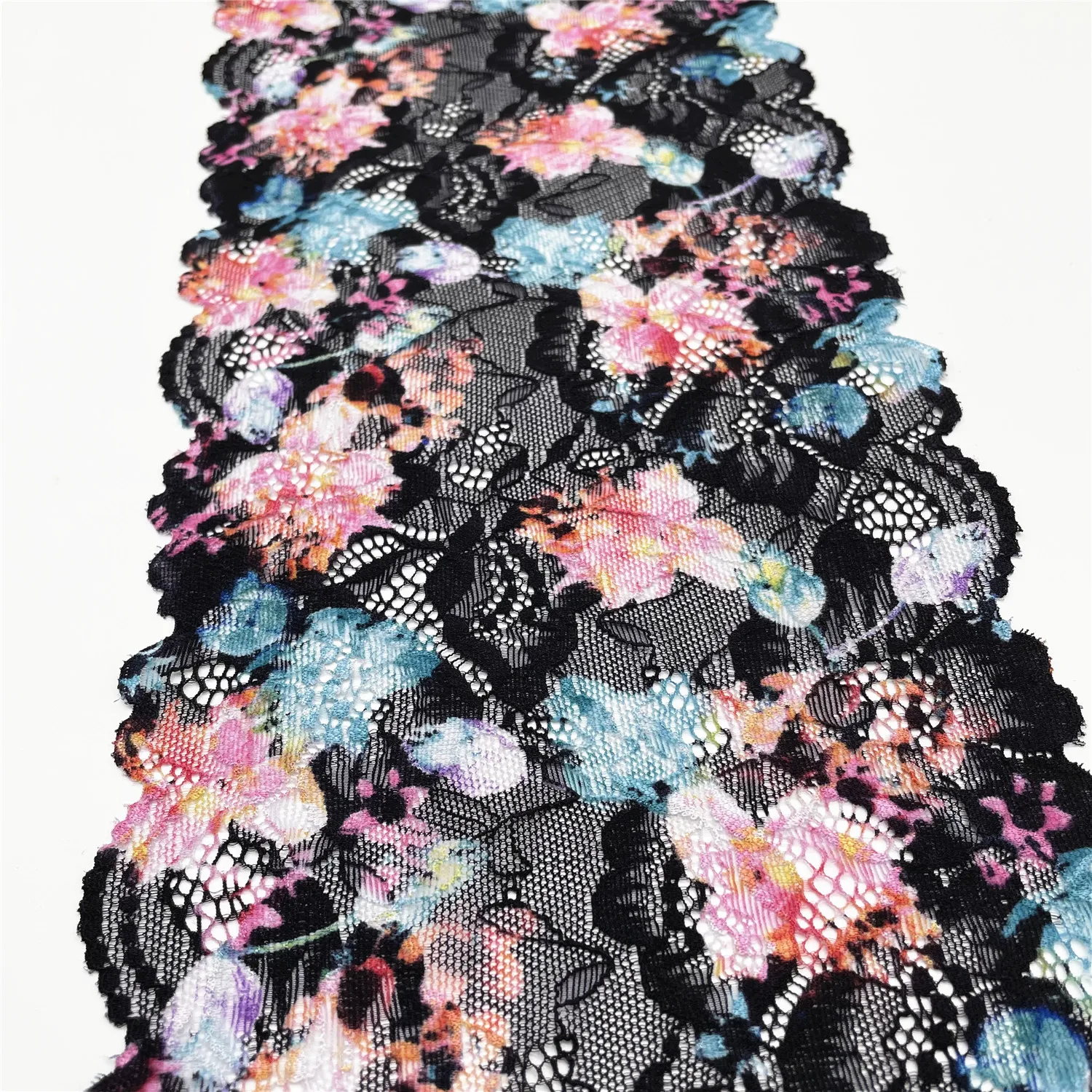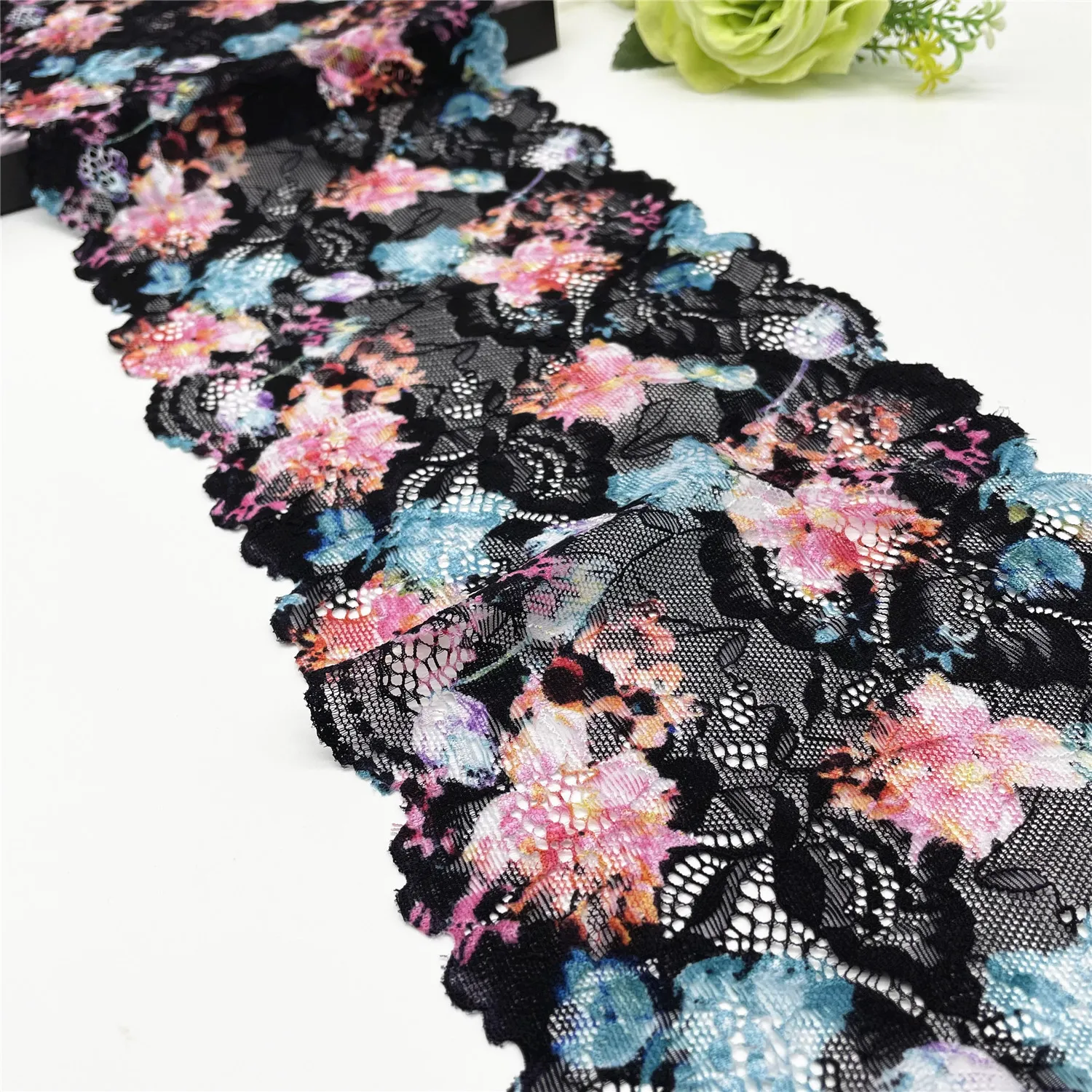 Width 7 1/4 inch (18.50cm) Mixed Design Pink, Blue And Purple Flower Stretch Elastic Lace Trim Lingerie DIY Crafts Sewing Supplies Decoration Accessories For Garments