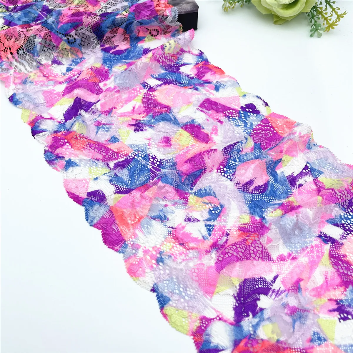 3y/lot Width 18.50cm Mixed Purple Pink Blue Stretch Lace Trim