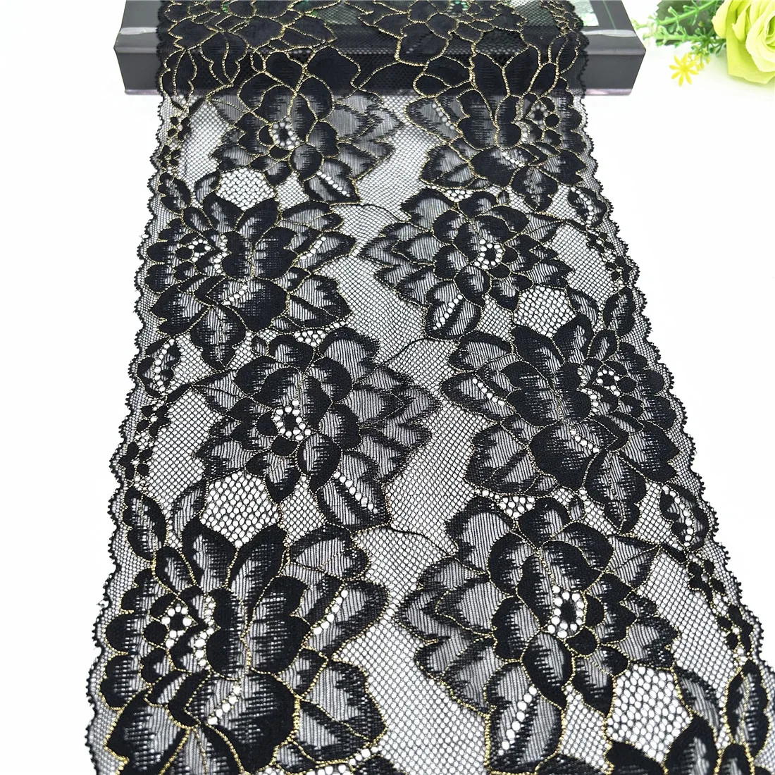 3y/lot W 8 inch 20.50cm Black Gold Elastic Lace Trim For Lingerie Sewing Craft DIY Apparel Fabric Lace Wedding Garment Accessory