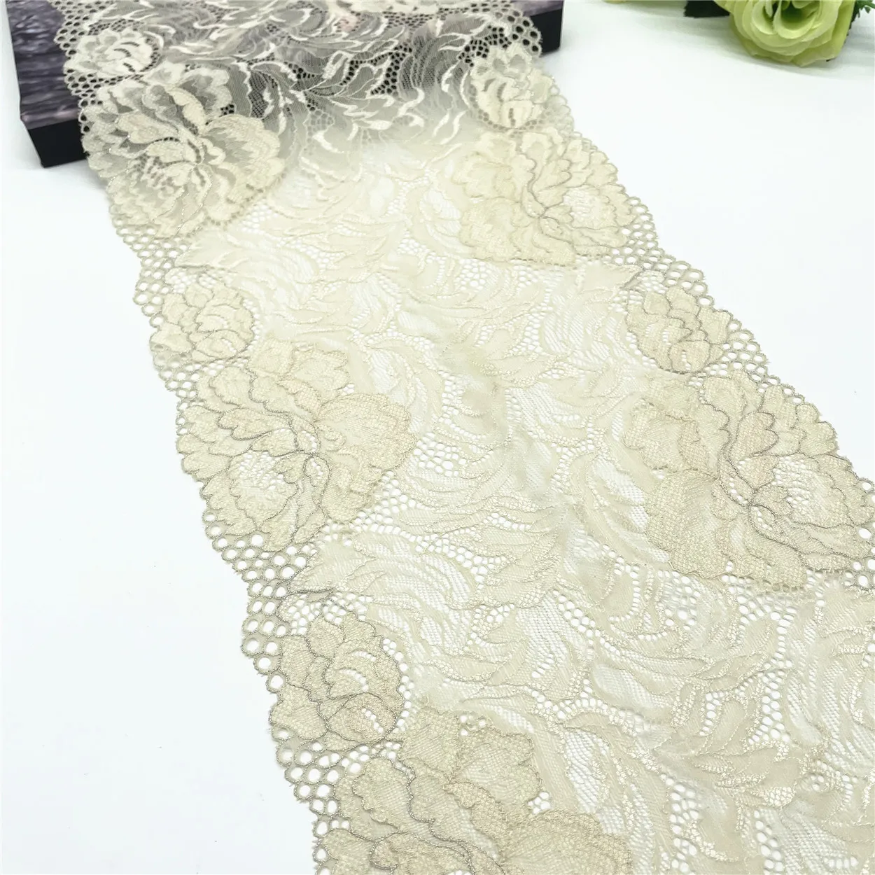 Width 21cm Cream Silver Elastic Stretch Lace Trimming For Dress Sewing Applique Costume Lace Fabrics Lingerie Underware accessory Skirt Hem Decor Lace Handmade Sewing Supplies