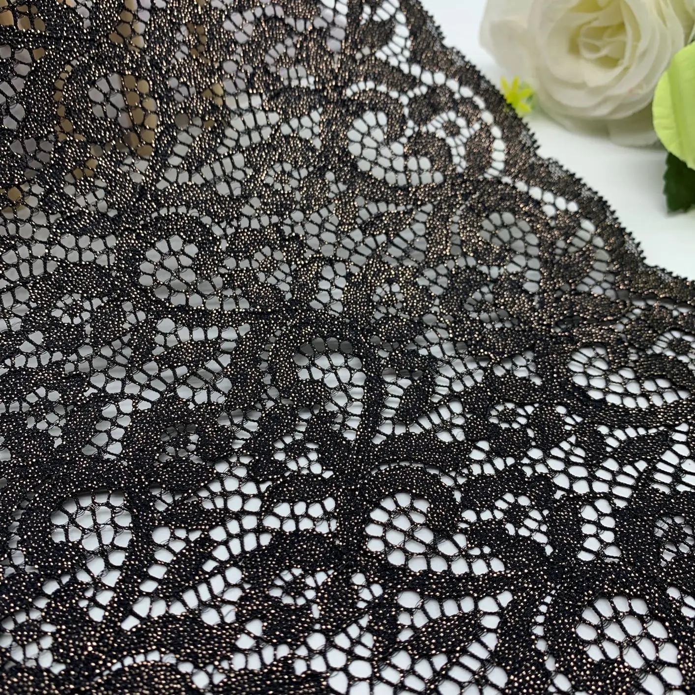 24.50cm Black With Shimmer Elastic Stretch Lace Trimming Foil For Dress Sewing Applique Costume Lace Fabrics Lingerie Underware accessory Skirt Hem decor lace handmade sewing supplies