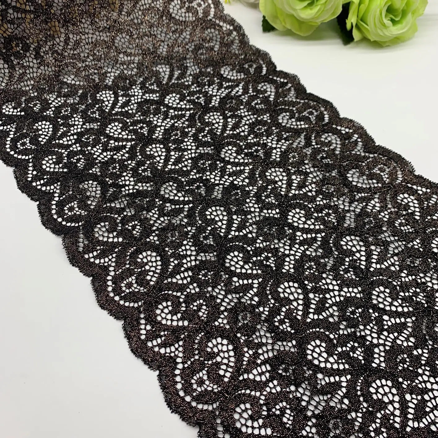 3y/lot Width 24.50cm Black Shiny Foil Elastic Stretch Lace Trims Skirt Hem For Clothing Dress Sewing Applique Costume Metallic