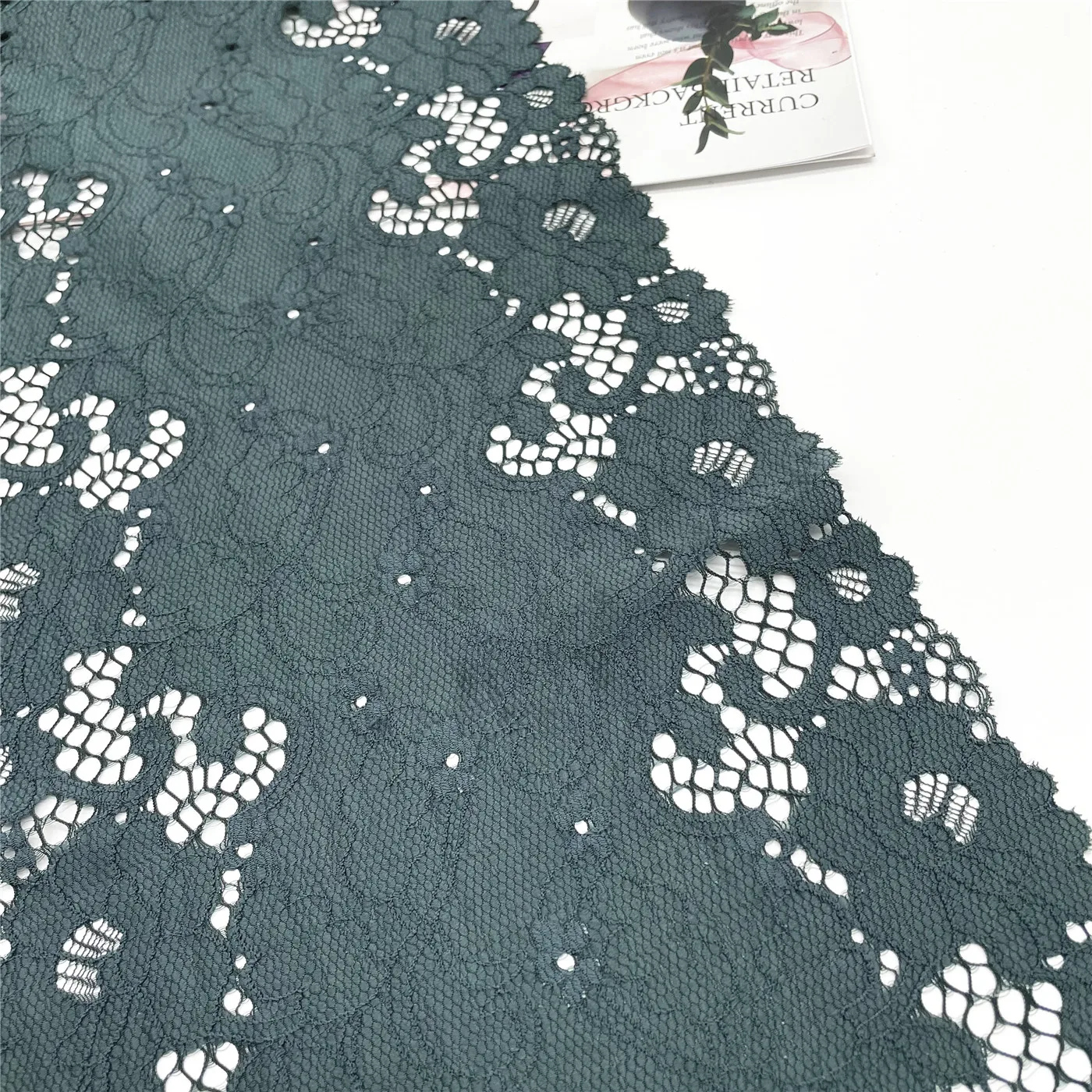Width 9 inch 23cm Elastic Stretch Lace Trims Dark Green For Clothing Accessories Dress Sewing Applique Costume Lace Fabrics