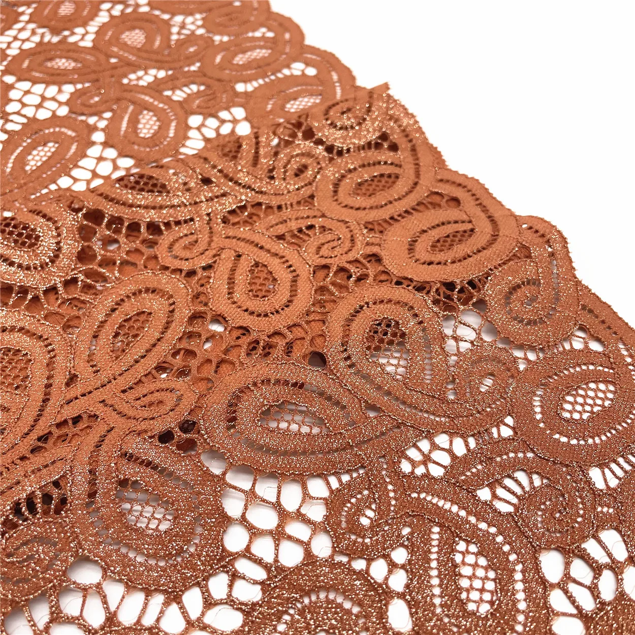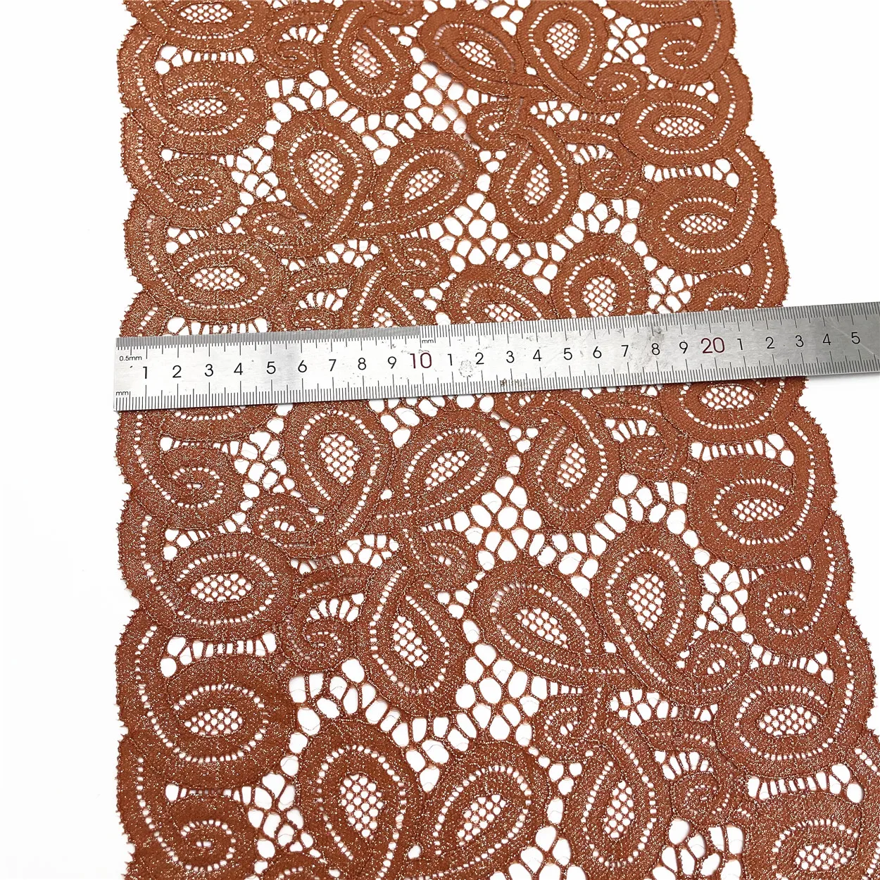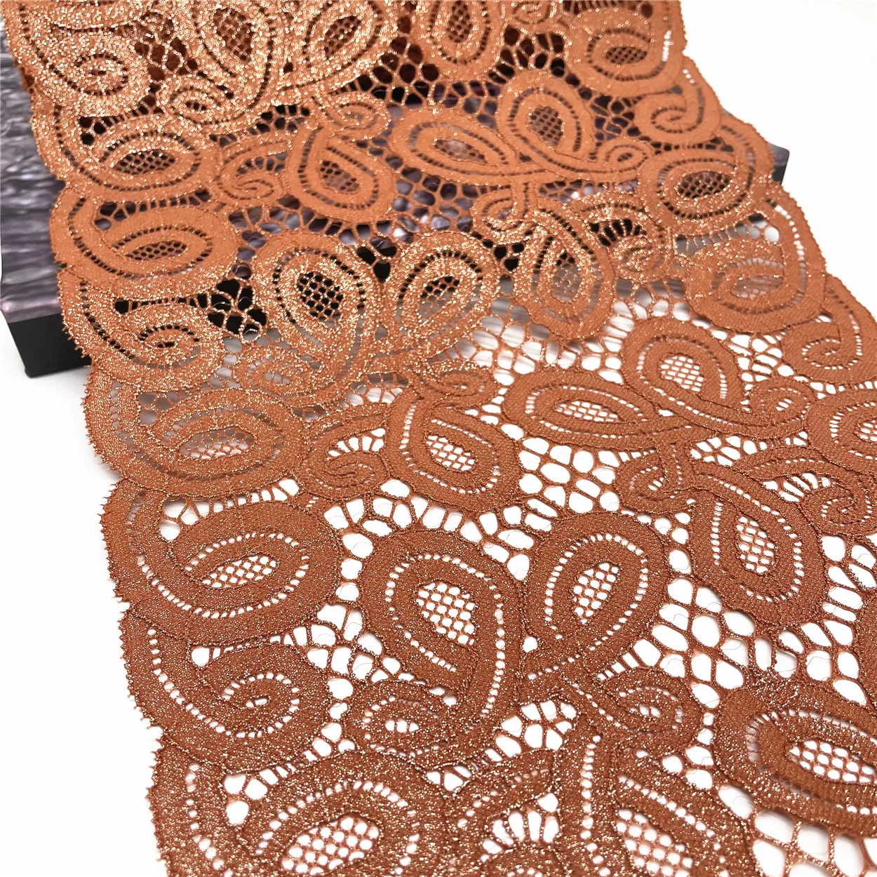 Width 9 inch 23cm Tan with shimmer foil stretch elastic lace with foil special shimmer deco trimming garment accessory DIY material fabric lace