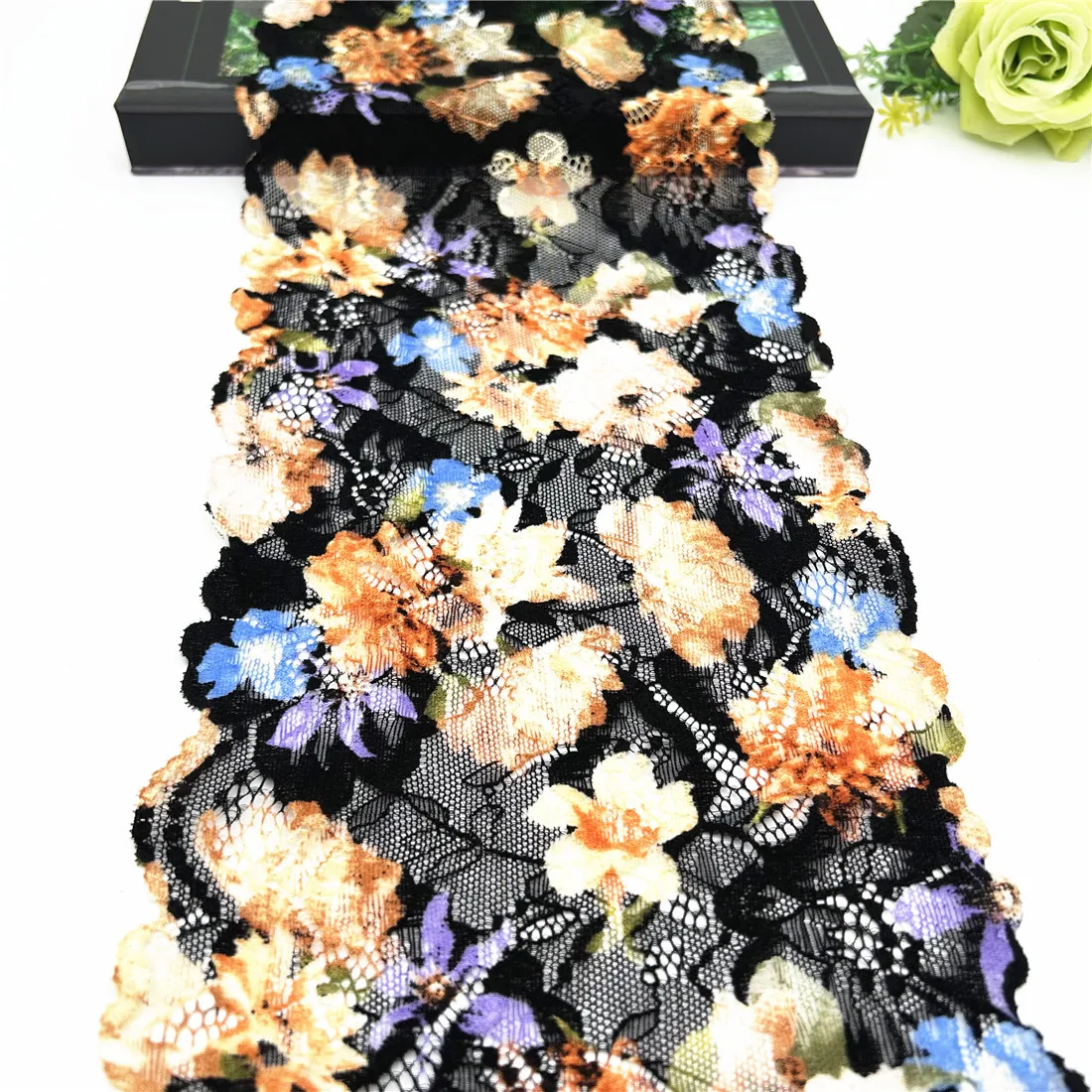 Width 18cm 5 Designs Mixed Orange Elastic Stretch Lace Trims For Clothing Accessories Dress Sewing Applique Costume Lace Fabrics Lingerie Underware Accessory Skirt Hem Decor Lace Handmade Sewing Supplies