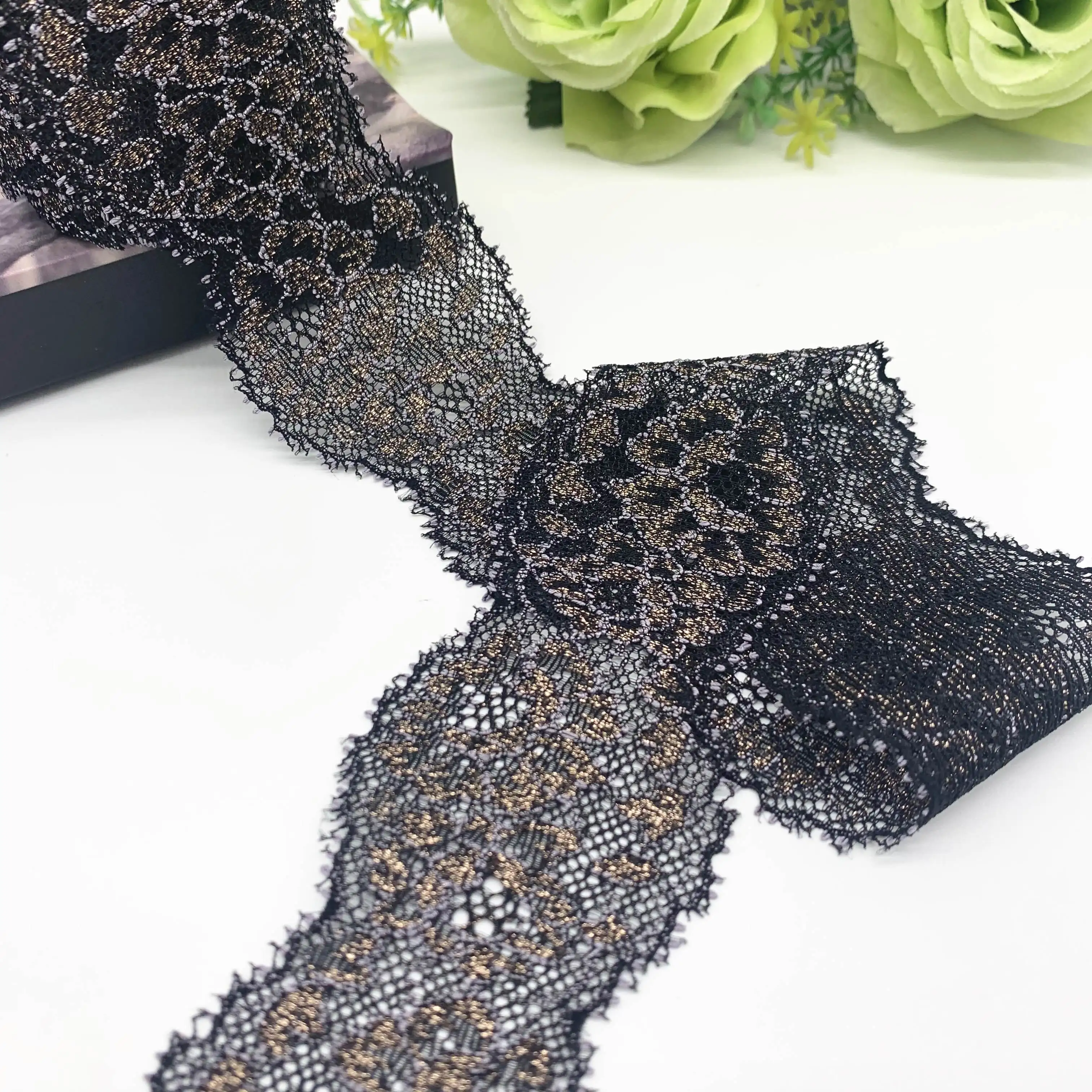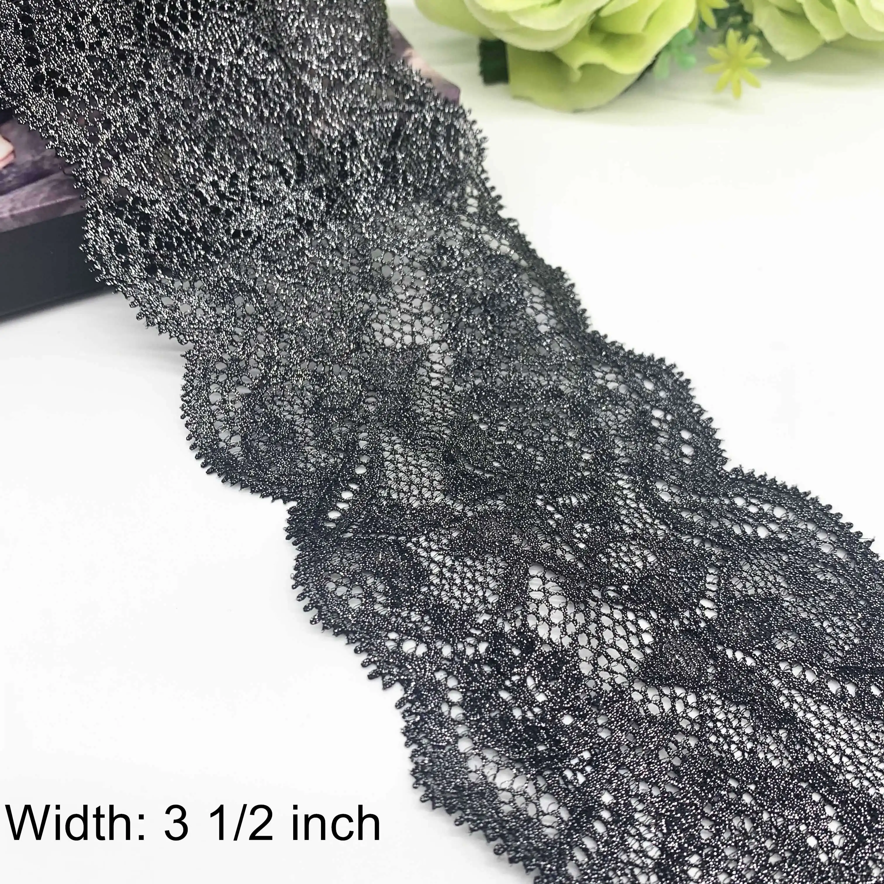Width 2 – 3 1/2 inch 4 Colors Foil Elastic Stretch Lace Trims Shiny For Clothing Accessories Dress Sewing Applique Costume Lace Fabrics